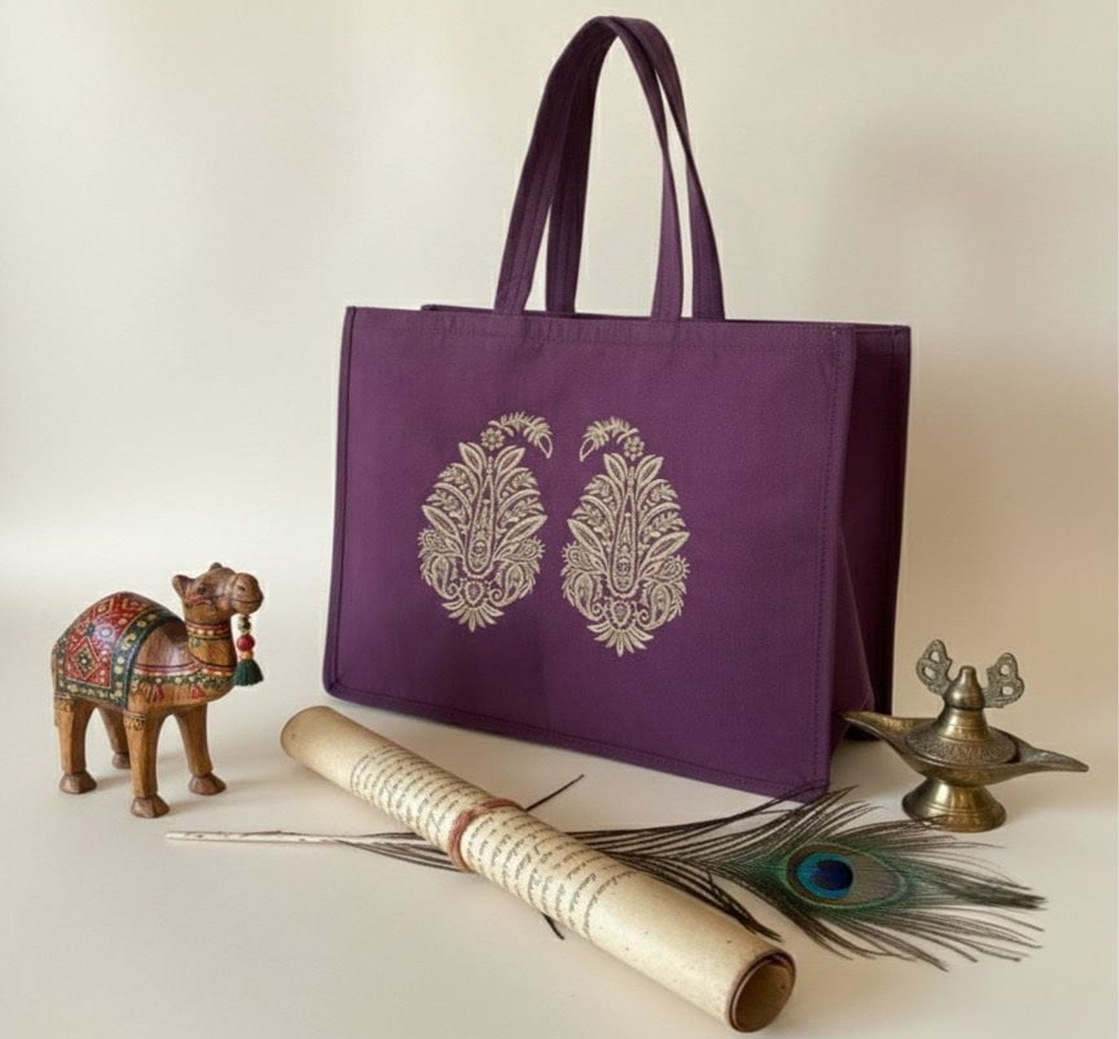 • Sophisticated Design: Features a rich purple hue that serves as a bold backdrop for the detailed, mirror-image paisley embroidery.